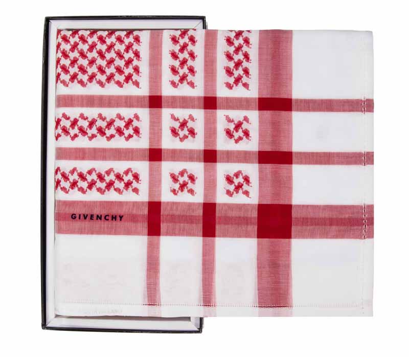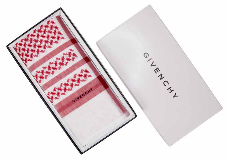 شماغ جيفنشي المميز والمصنوع من أفخر وأجود أنواع القطن العالمي، وقـد تم تصميمه على أرقــى المعايير الأوربية وأفضــل طرق التصنيع العالمي، لكي تُرضي ذوق النخبة. صناعة إنجليزية