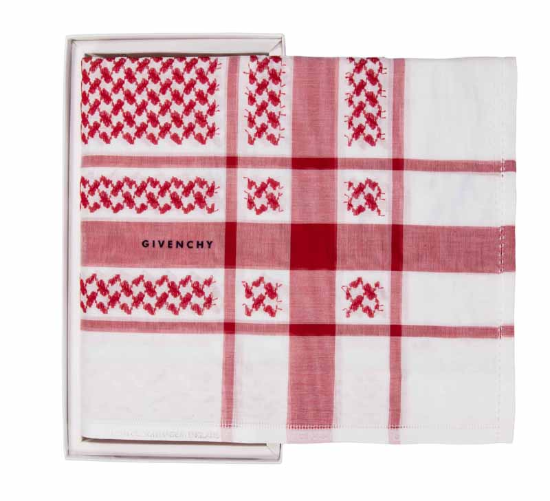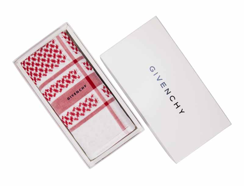 شماغ جيفنشي المميز والمصنوع من أفخر وأجود أنواع القطن العالمي، وقـد تم تصميمه على أرقــى المعايير الأوربية وأفضــل طرق التصنيع العالمي، لكي تُرضي ذوق النخبة. صناعة إنجليزيةصنع عام 2017