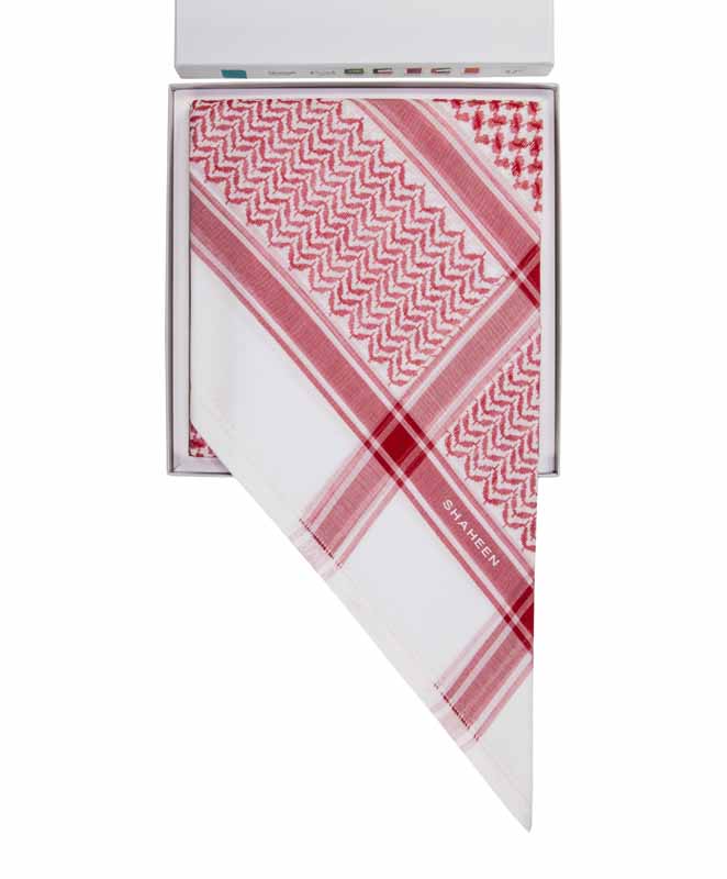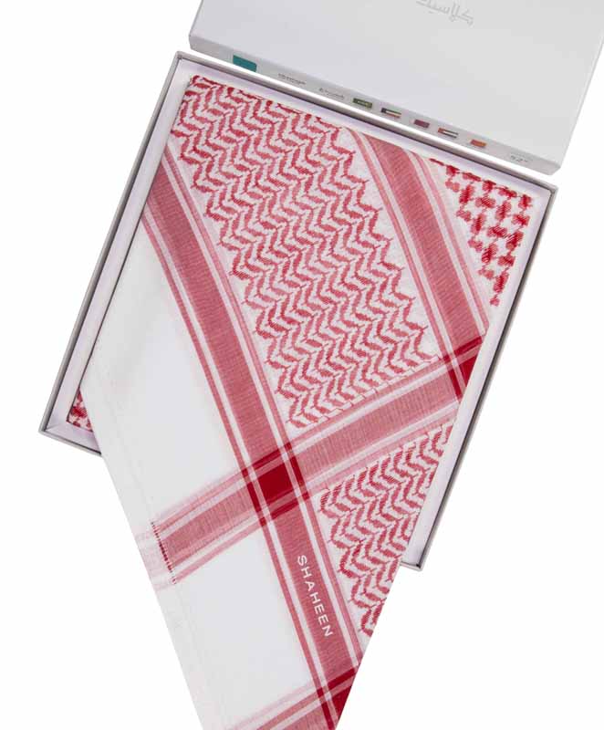أفضل جودة مع دقة في التصميم بصناعة إنجليزية من القطن 100% وتصميم جديد للشماغ والعلبة.