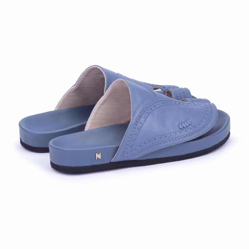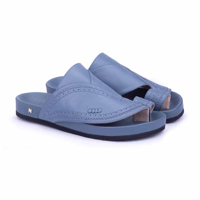 حذاء غرناطة الشرقي من ماركة نقوة المميزة. ينفرد الحذاء بتصميم يدمج عبق الماضي والحاضر حيث تميز التصميم بجلد عالي الجودة مما يحافظ على متانة وعمر الحذاء لفترة طويل ويعطي الراحة الكاملة اثناء ارتداءه والمشي عليه من ابزر مميزات الحذاء يتميز لون الحذء بدرجة اللون سماوي . البطانة الداخلية للحذاء تأتي جلد.وتتميز ايضا الطبقة العلوية بجلد طبيعي .باطن الحذاء مبطن لتوفير الراحه اثناء الارتداء.خيوط الحذاء مصممة خصيصا لتناسب الذوق.الحذاء تم تصميمه بشكل كامل يدوياً وتحت أمهر الحرفيين