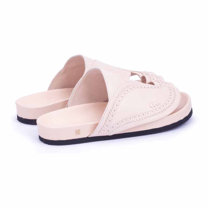 حذاء غرناطة الشرقي من ماركة نقوة المميزة. ينفرد الحذاء بتصميم يدمج عبق الماضي والحاضر حيث تميز التصميم بجلد عالي الجودة مما يحافظ على متانة وعمر الحذاء لفترة طويل ويعطي الراحة الكاملة اثناء ارتداءه والمشي عليه من ابزر مميزات الحذاء يتميز لون الحذء بدرجة اللون بيج فاتح. البطانة الداخلية للحذاء تأتي جلد.وتتميز ايضا الطبقة العلوية بجلد طبيعي .باطن الحذاء مبطن لتوفير الراحه اثناء الارتداء.خيوط الحذاء مصممة خصيصا لتناسب الزوق.الحذاء تم تصميمه بشكل كامل يدوياً وتحت أمهر الحرفيين