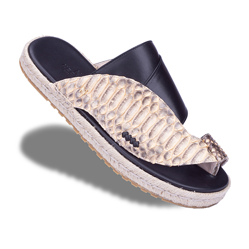 حذاء نقوة ماربيا كحلي مع بيج جلد ثعبان