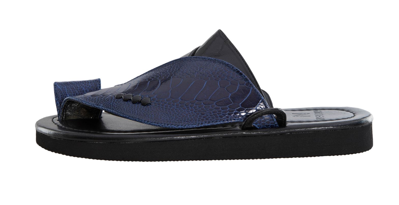 حذاء شرقي من ماركة نقوة المميزة. ينفرد الحذاء بتصميم يدمج عبق الماضي والحاضر حيث تميز التصميم بجلد عالي الجودة مما يحافظ على متانة وعمر الحذاء لفترة طويل ويعطي الراحة الكاملة اثناء ارتداءه والمشي عليه من ابزر مميزات الحذاء يتميز لون الحذء بدرجة اللون الكحلي مع الاسود.البطانة الداخلية للحذاء تأتي جلد.وتتميز ايضا الطبقة العلوية بجلد ساق نعام طبيعي .باطن الحذاء مبطن لتوفير الراحه اثناء الارتداء الحذاء.خيوط الحذاء تأتي باللون الاسود.الحذاء تم تصميمه بشكل كامل يدوياً وتحت أمهر الحرفيين