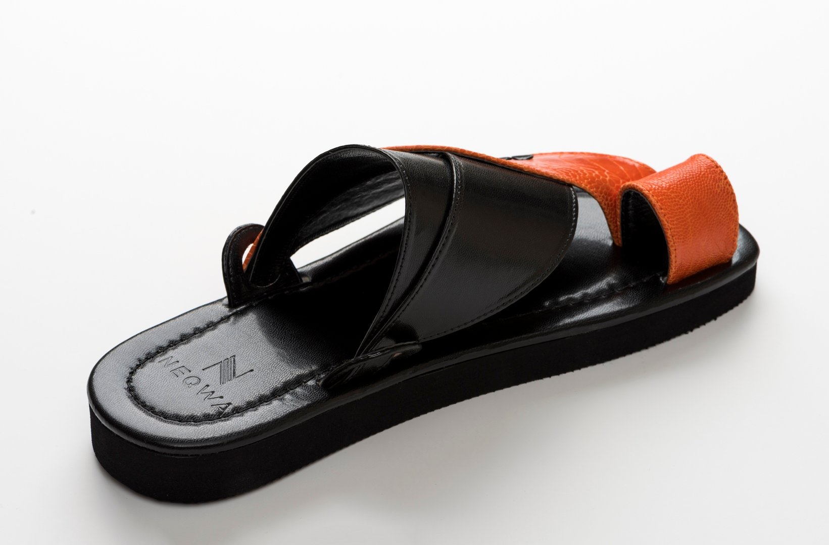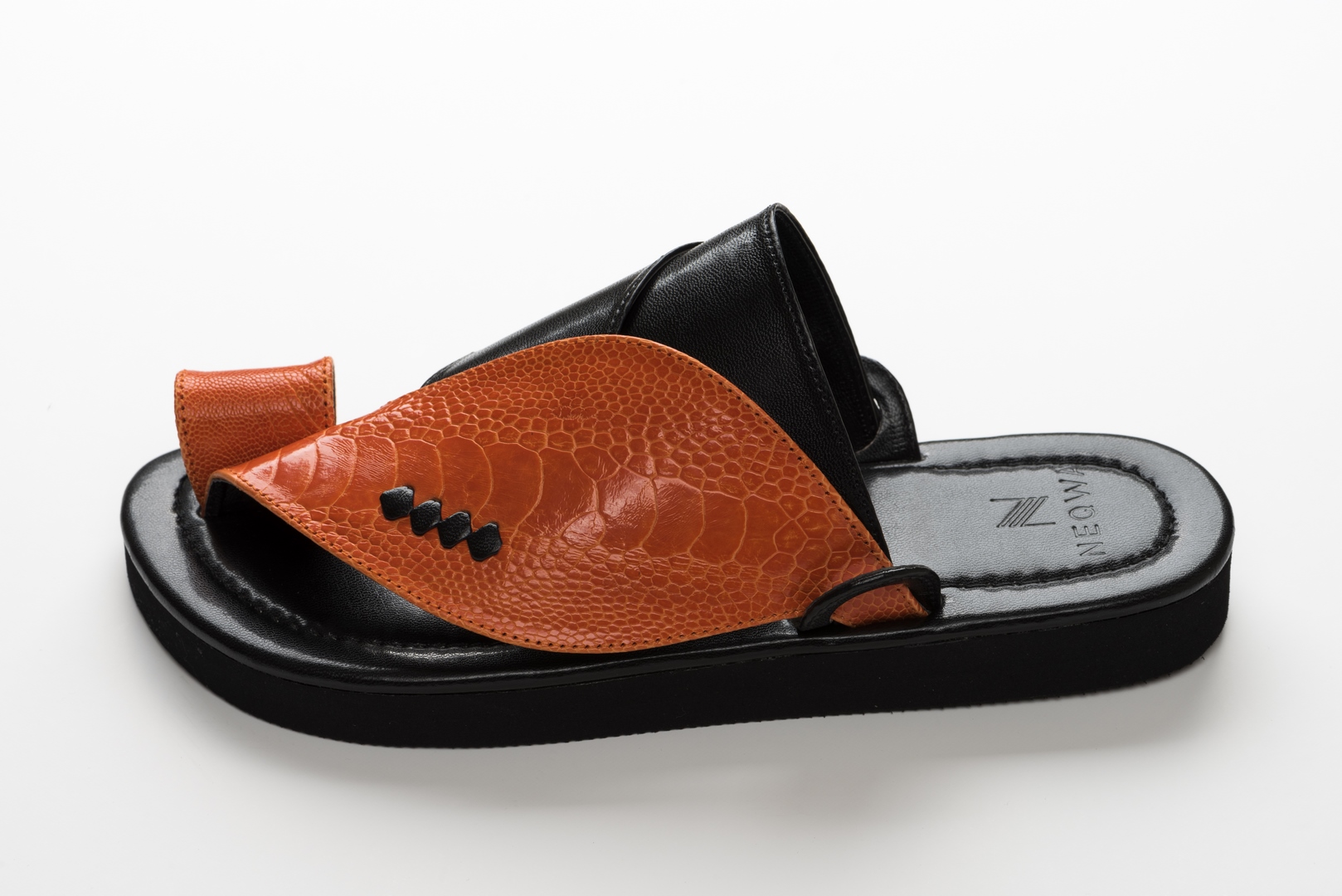 حذاء شرقي من ماركة نقوة المميزة. ينفرد الحذاء بتصميم يدمج عبق الماضي والحاضر حيث تميز التصميم بجلد عالي الجودة مما يحافظ على متانة وعمر الحذاء لفترة طويل ويعطي الراحة الكاملة اثناء ارتداءه والمشي عليه من ابزر مميزات الحذاءيتميز لون الحذء بدرجة اللون البرتقالي .البطانة الداخلية للحذاء تأتي جلد.وتتميز ايضا الطبقة العلوية بجلد ساق نعام طبيعي .باطن الحذاء مبطن لتوفير الراحه اثناء الارتداء الحذاء.خيوط الحذاء تأتي باللون الاسود.الحذاء تم تصميمه بشكل كامل يدوياً وتحت أمهر الحرفيين