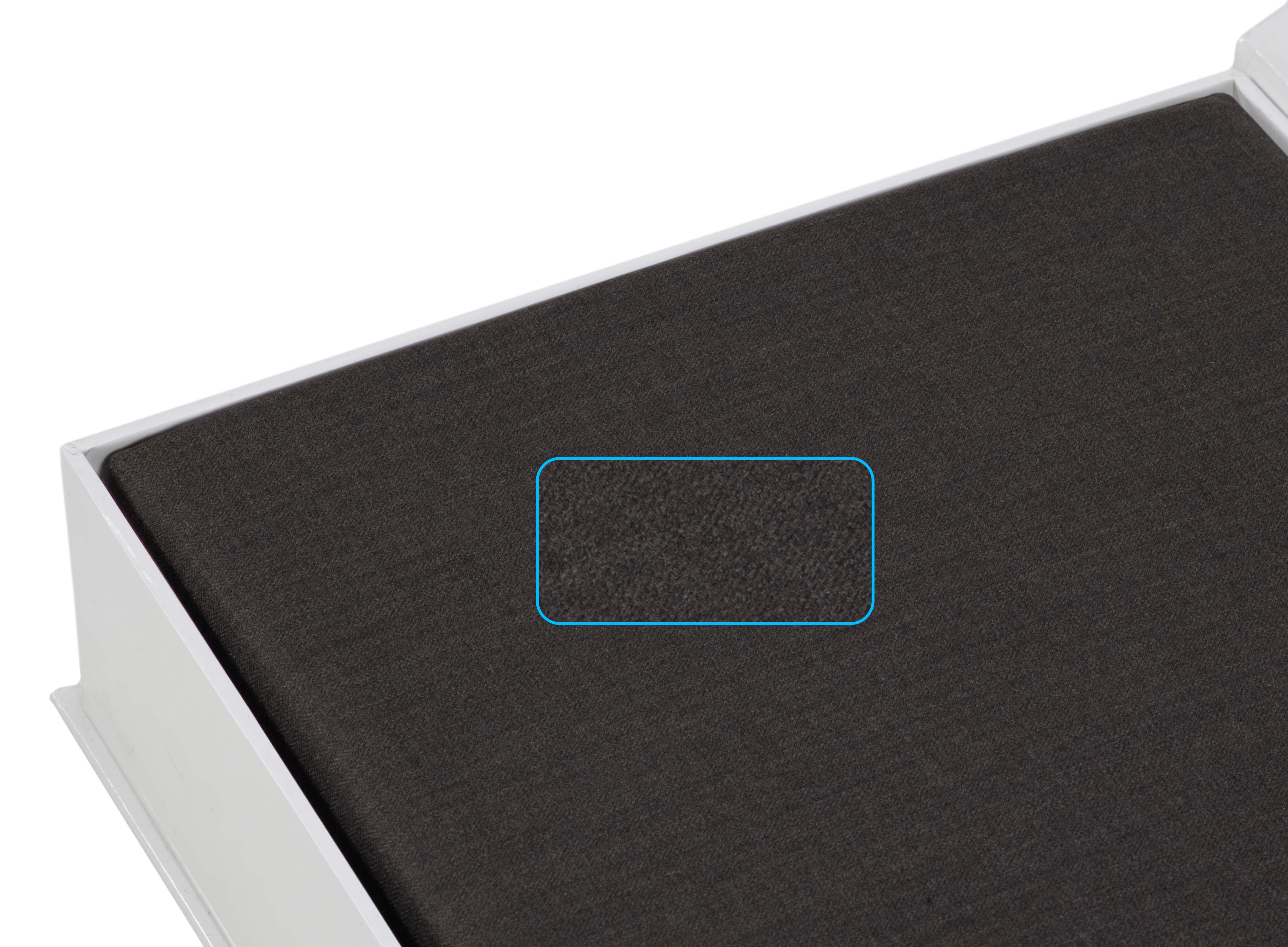يأتي مع العلبة مصاحباً للقماش شعارين مميزين للماركة خيار للجيب وخيار خلف الرقبة.