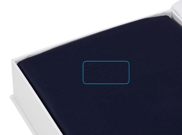 يأتي مع العلبة مصاحباً للقماش شعارين مميزين للماركة خيار للجيب وخيار خلف الرقبة.