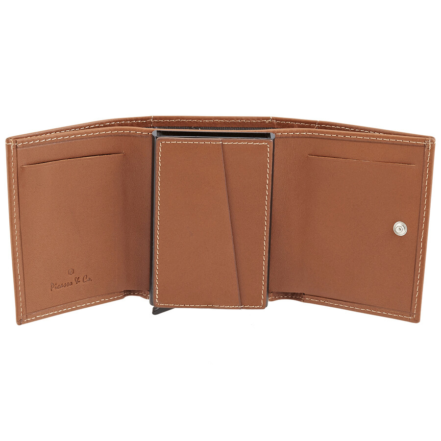 حامل بطاقات من جلد العجل باللون الجملي وصندوق من الفولاذ المقاوم للصدأ Picasso and Co. لذلك يتميز حامل البطاقة هذا: 1 حجرة نقدية ، 4 فتحات لبطاقات الائتمان ، 6 داخل الصندوق المصنوع من الفولاذ المقاوم للصدأ بالإضافة إلى نظا