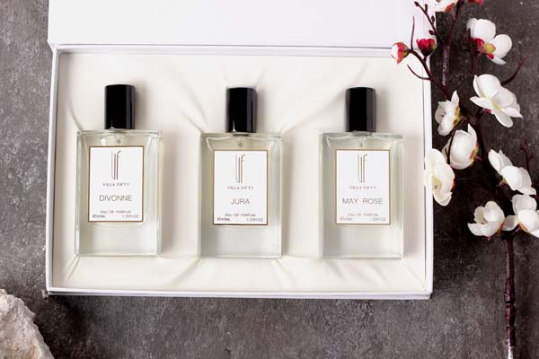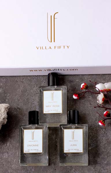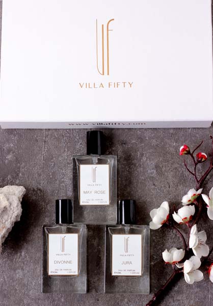 مجموعة VILLA FIFTY الخاصة , صندوق مميز يحتوي على عطور VILLA FIFTY الثلاثة : May Rose Divonne Jura 40 مل * كمية محدودة