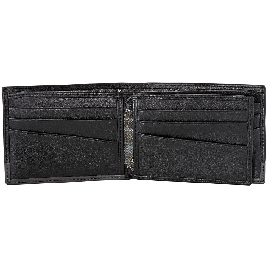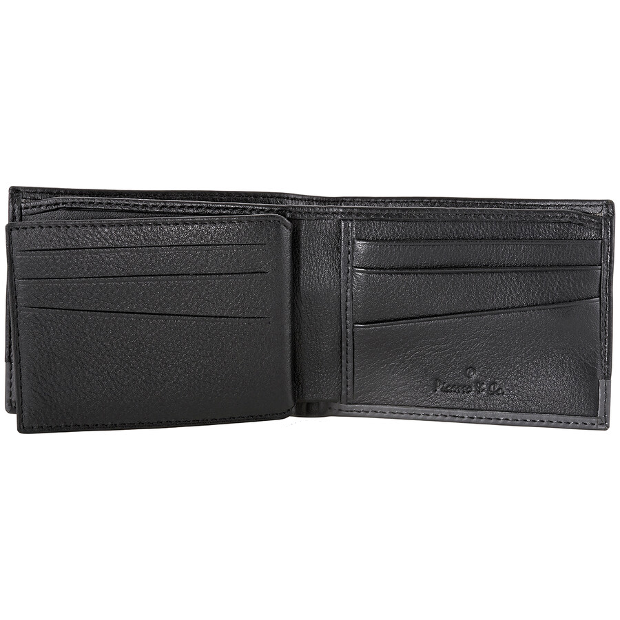 محفظة رفيعة بلونين أسود ورصاصي بيكاسو وشركاه لذلك تتميز هذه المحفظة بما يلي: 12 فتحة بطاقة ائتمان ، حجرتان نقديتان ، و 3 جيوب منزلقة. الأبعاد: 11 × 8.3 سم. 1812